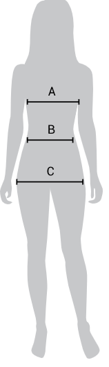 Measure under your arms and across shoulder blades, around the fullest part of your bust. Hold one finger between body and tape.